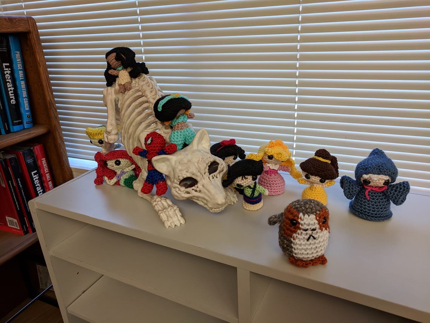 And now, because I spent so much time over the last year doing crochet instead of playing quite as many puzzle games, my teacher desk has buddies:
